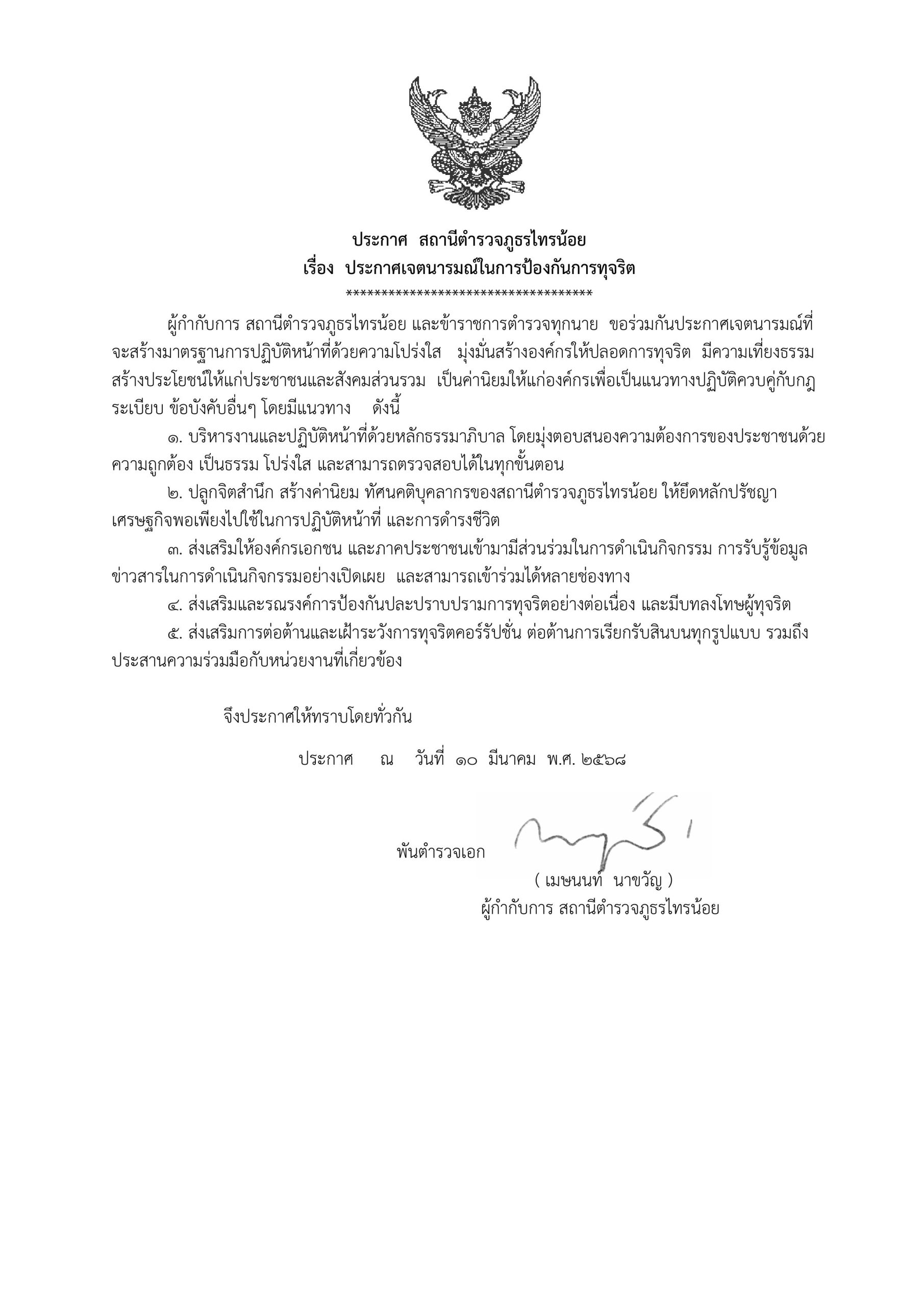 (1 พ.ย.68) ผู้สื่อข่าวรายงานว่า ที่ สภ.ไทรน้อย จ.นนทบุรี พ.ต.อ.ณัฏฐ์เดชา ฐานิสภัทราพงศ์ ผกก.สภ.ไทรน้