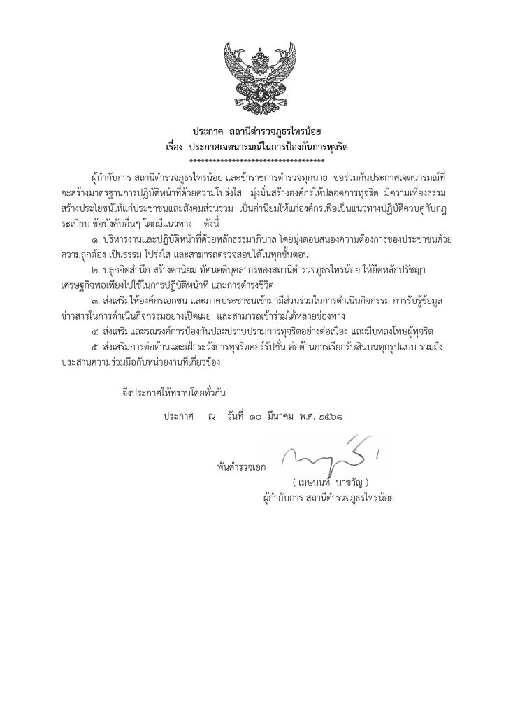 ประกาศ เจตนารมณ์ในการป้องกันการทุจริต 31 มีนาคม 2568 โดย Admin / ประชาสัมพันธ์ข้อมูลข่าวสาร,ข่าวกิจกรรม,ประชาสัมพันธ์ข้อมูลข่าวสาร