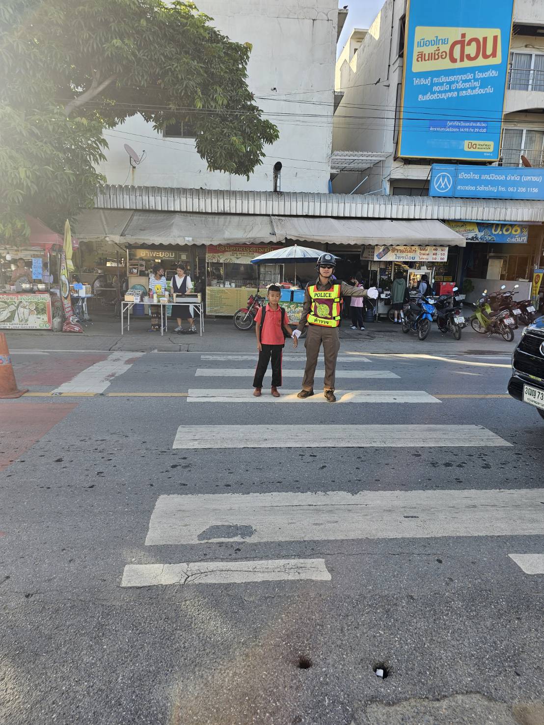 โครงการ1ตำรวจ 1วัน 1ความดี 7 สิงหาคม 2567 โดย Admin / ประชาสัมพันธ์ข้อมูลข่าวสาร,ข่าวฝากประชาสัมพันธ์,ประชาสัมพันธ์ข้อมูลข่าวสาร โครงการ1ตำรวจ 1วัน 1ความดี งานจราจร สภ.ไทรน้อย ภ.จว.นนทบุรี ***************** เรียน ผู้บังคับบัญชา วันนี้ (6 ส.ค.67)เวลา 07.30 น. ภายใต้การอำนวยการสั่งการของ * พ.ต.อ.เมษนนท์ นาขวัญ ผกก.สภ.ไทรน้อย * พ.ต.ท.อดิศร บุญสนอง รอง ผกก.ป.สภ.ไทรน้อย * พ.ต.ท.สมศักดิ์ รักษาชล สวป.สภ.ไทรน้อย (หัวหน้างานจราจร) ∆ ชุดปฏิบัติหน้าที่มี ร.ต.อ.ชัยชนะ พวงเพชร รองสว.(ป.)สภ.ไทรน้อย ด.ต.รพีพงษ์ ศรีชัยวงศ์ ทน.6602 ส.ต.ต.ขวัญชัย วงศ์ถาวรชาติ ทน.6607 น.ส.ต.ธนพล จันธิชัย ∆ ไทรน้อย 60 พร้อมกำลังพร้อมกำลังได้ทำการอำนวยความสะดวกการจราจรแก่เด็กนักเรียนซึ่งเดินข้ามถนนโดยไม่มีผู้ปกครองมาด้วยเกรงจะได้รับอันตรายจึงได้จูงมือเด็กเดินข้ามถนนเพื่อความปลอดภัยดังกล่าว จึงเรียนมาเพื่อโปรดทราบ